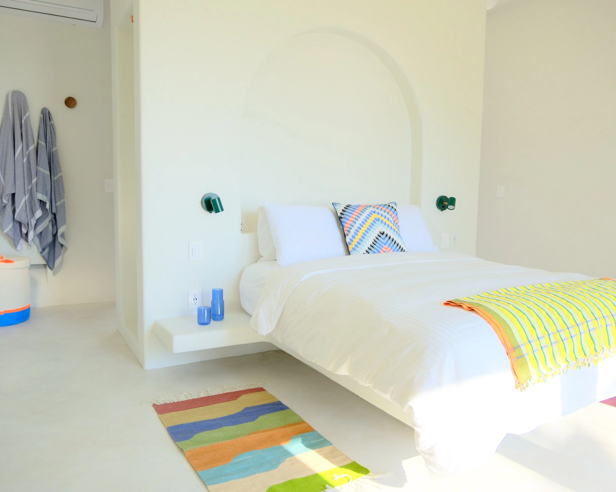 All casitas at Nido de Pajarito are freestanding, air-conditioned, and feature en-suite bathrooms, offering privacy, comfort, and a quiet place to retreat after a day in the sun