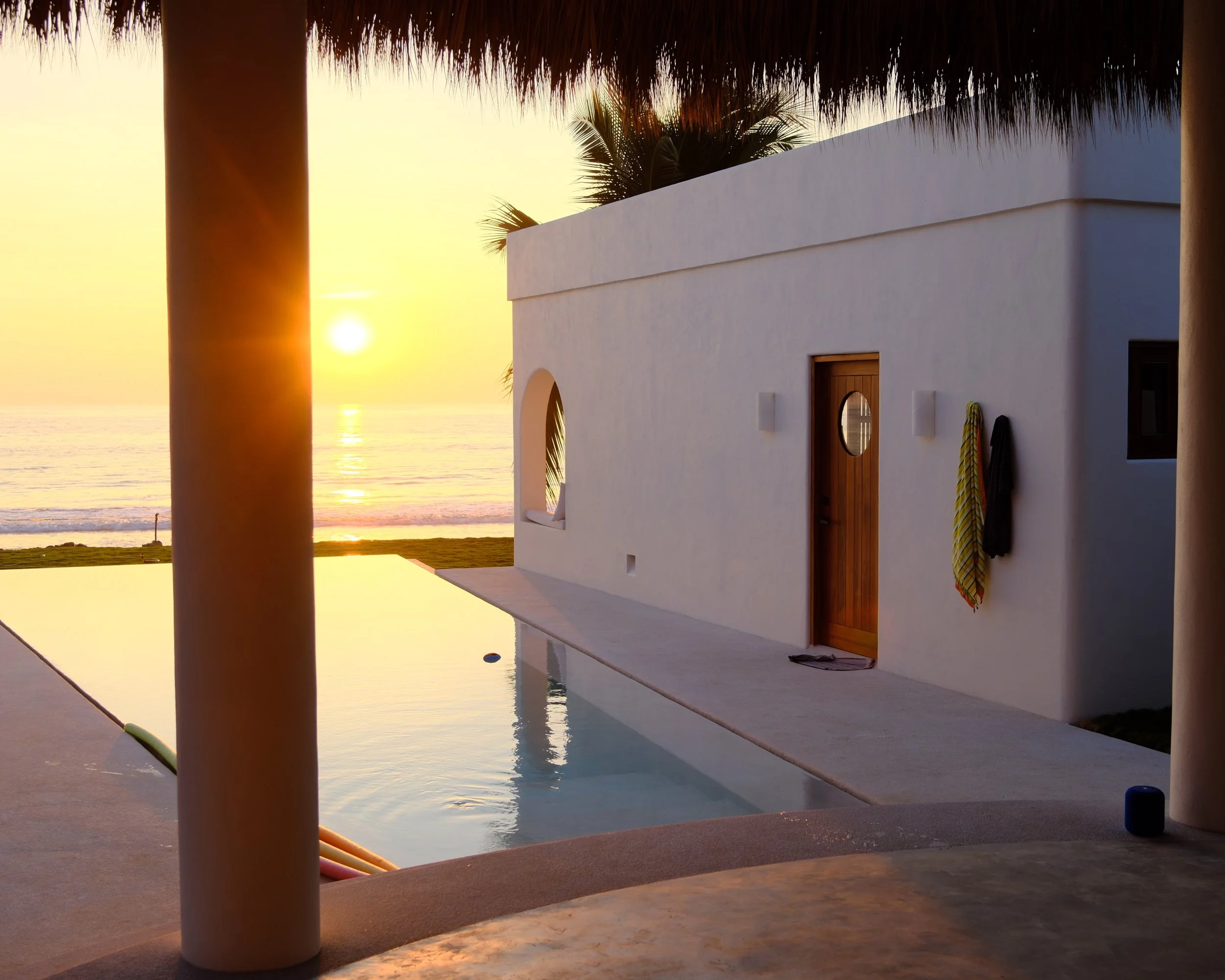 Positioned on either side of the infinity pool, the two Front Casitas look directly out toward the beach and point break. Each features a queen bed and a spacious en-suite bathroom with both an indoor and outdoor shower, allowing you to rinse off under the open sky. These casitas offer the closest connection to the ocean, with views and breezes that flow through the space.